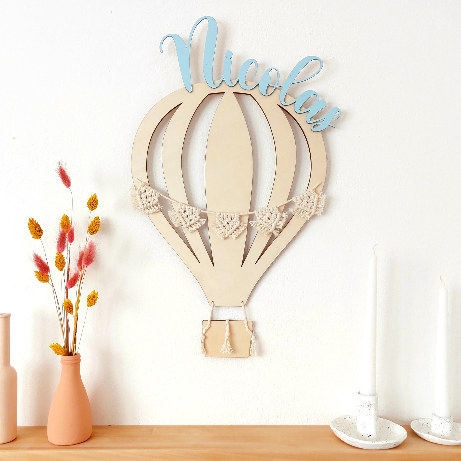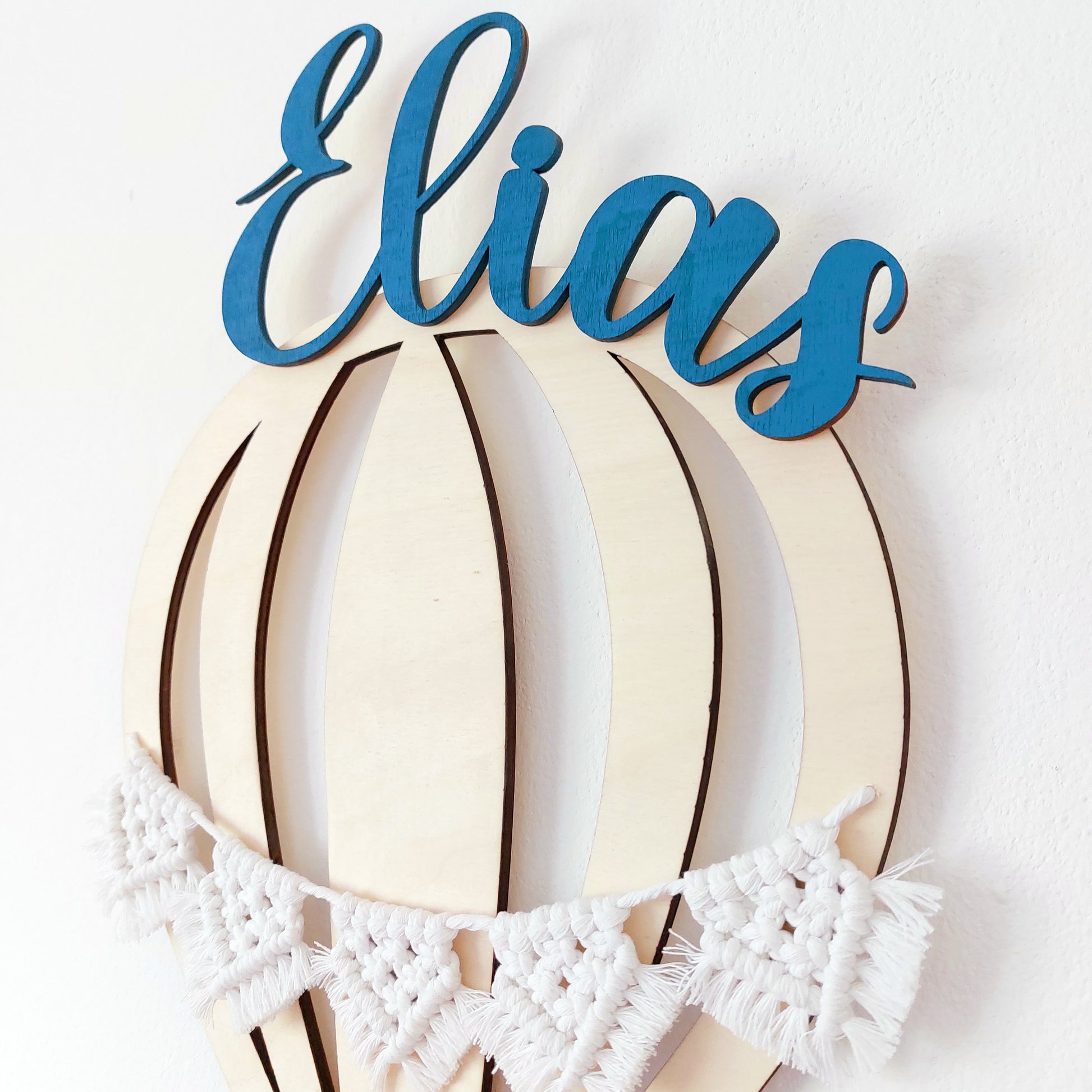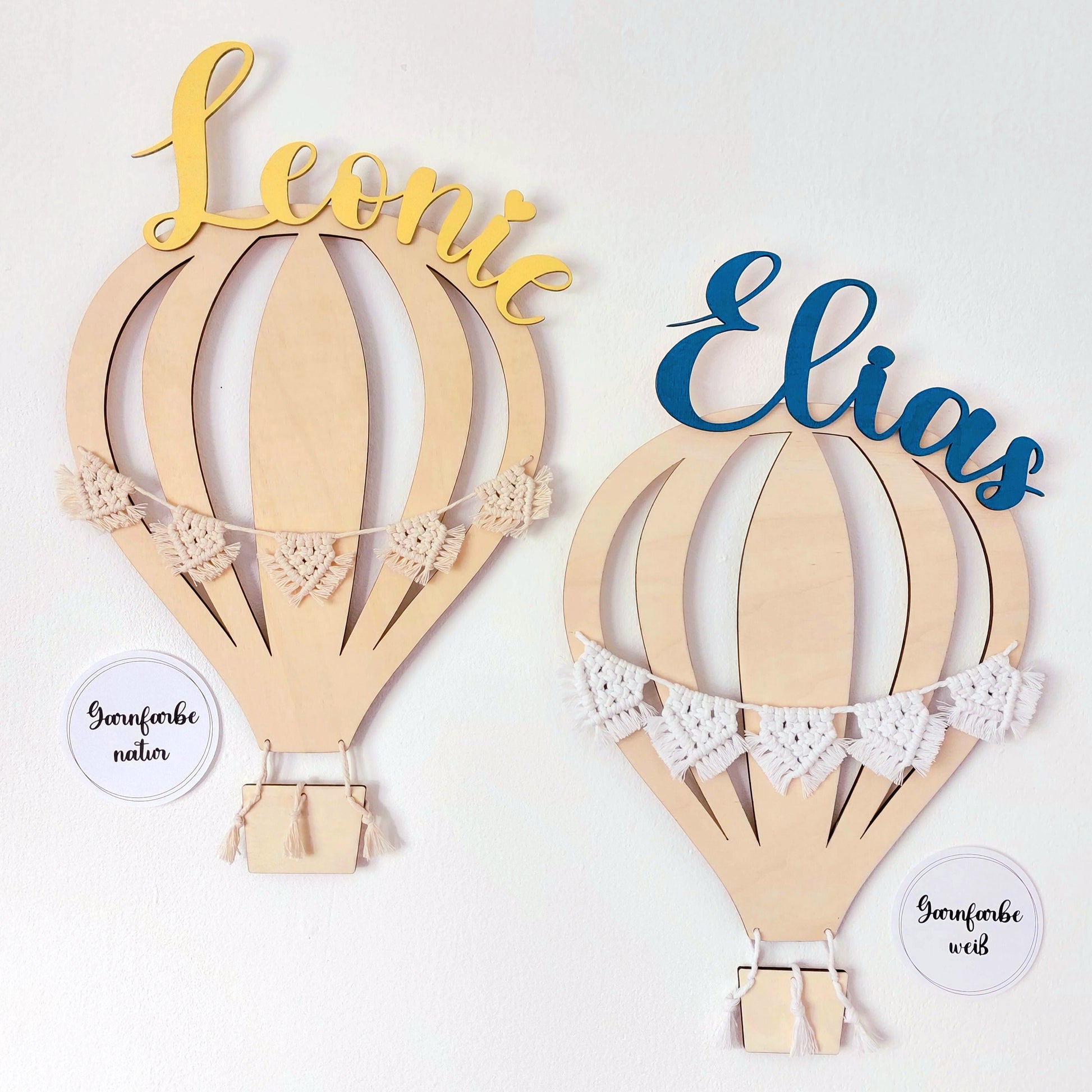 Das Namensschild Heißluftballon wird in liebevoller Handarbeit nach deinen persönlichen Wünschen aus Naturmaterialien angefertigt. Neben der Farbe des Namens kannst du dich außerdem zwischen naturfarbenem oder weißem Garn für die Fransen entscheiden. Welche Farben zur Auswahl stehen, siehst du auf den Bildern. Wenn dein Name einen i-Punkt enthält, kannst du ihn als Herzchen gestalten lassen - dazu bitte oben das Häkchen anklicken. Namen bis zu zehn Buchstaben sind problemlos möglich. Bei langen Doppelnamen finden wir eine individuelle Lösung.