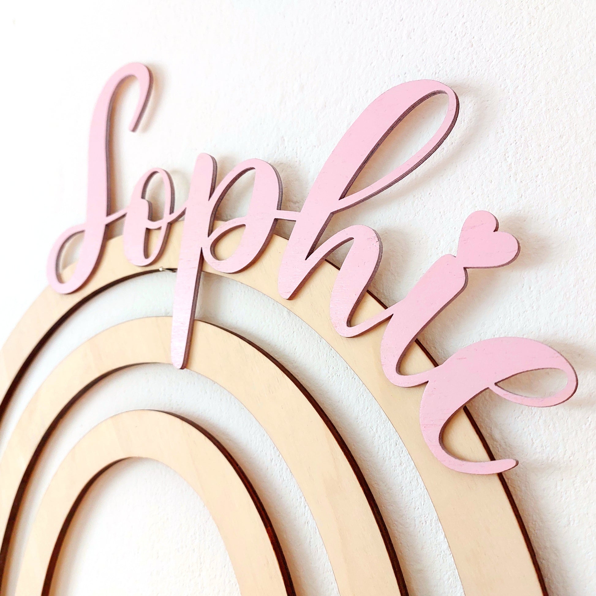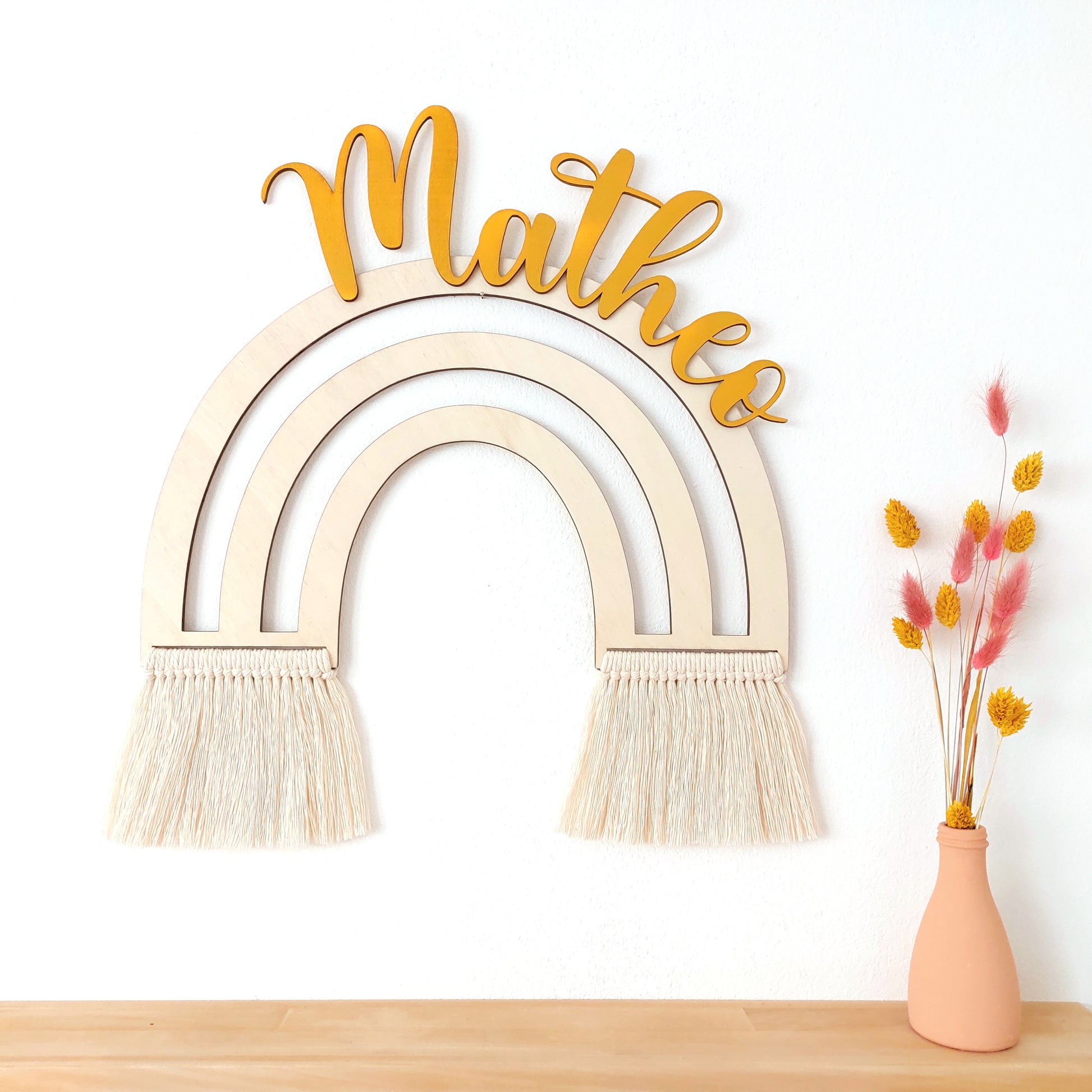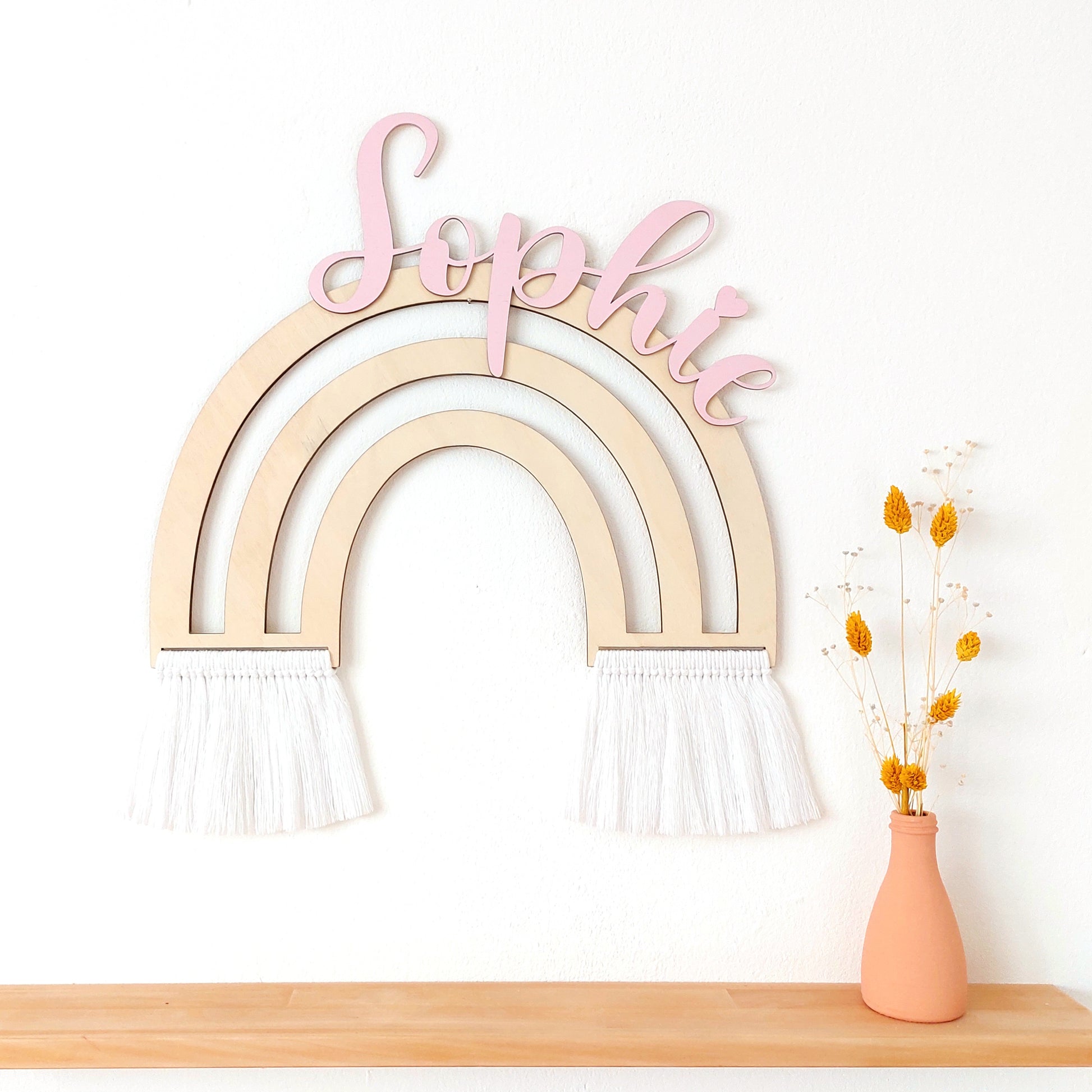 Das Namensschild Regenbogen wird in liebevoller Handarbeit nach deinen persönlichen Wünschen aus Naturmaterialien angefertigt. Neben der Farbe des Namens kannst du dich außerdem zwischen naturfarbenem oder weißem Garn für die Fransen entscheiden. Welche Farben zur Auswahl stehen, siehst du auf den Bildern. Wenn dein Name einen i-Punkt enthält, kannst du ihn als Herzchen gestalten lassen - dazu bitte unten das Häkchen anklicken. Namen bis zu zehn Buchstaben sind problemlos möglich. Bei langen Doppelnamen finden wir eine individuelle Lösung.